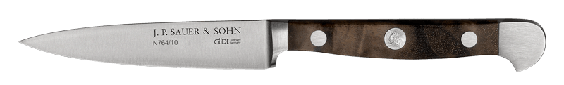 Alongside the chef’s knife, the paring knife or larding knife is the second-most important universal helper. It lies comfortably in the hand and is ideally suited for cleaning, peeling and cutting. It is also well-suited for slicing small fish fillets. The popularity of this knife is also evidenced by the fact that every region has its own pet name for this type of knife, for example ‘Pittermesser’, ‘Schnitzer’ or in some places even ‘Schneidteufelchen’.